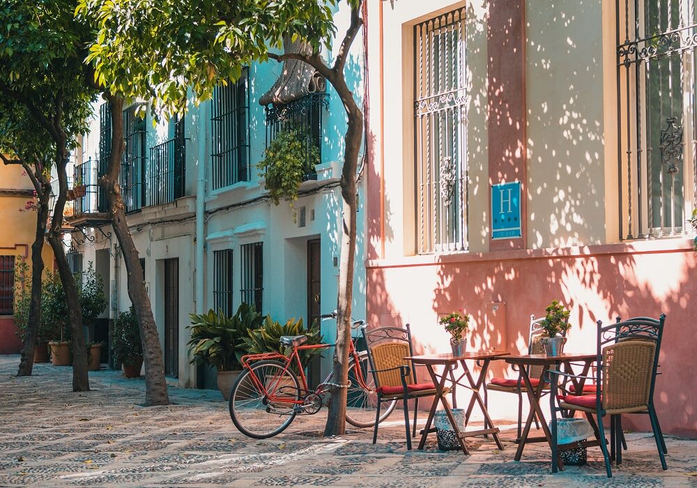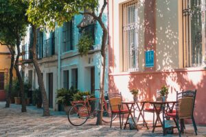 Charming Streetside Café in a Sunlit European Alley